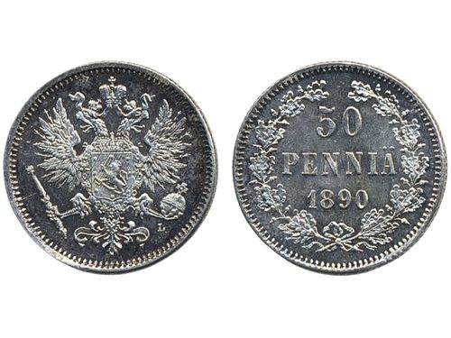 Coins, Finland. Alexander III, Bitkin 234, 50 penniä 1890. A beautiful specimen. 01/0. Coins, Finland. Alexander III, Bitkin 234, 50 penniä 1890. A beautiful specimen. 01/0. Visa mindre