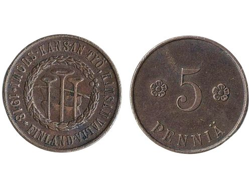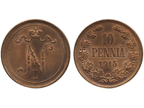 Coins, Finland. Nicholas II, Bitkin 438, 10 penniä 1915. A beautiful specimen with full red luster! 01/0. Coins, Finland. Nicholas II, Bitkin 438, 10 penniä 1915. A beautiful specimen with full red luster! 01/0. Visa mindre