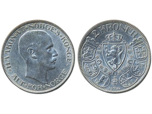 Coins, Norway. Haakon VII, NM 11, 2 kroner jubileum 1914. 14.96 g. 01. Coins, Norway. Haakon VII, NM 11, 2 kroner jubileum 1914. 14.96 g. 01. Visa mindre