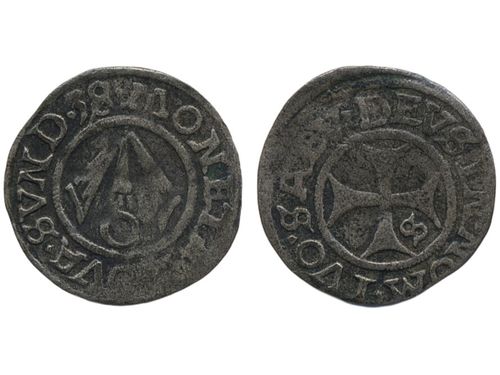 Coins, Denmark. Christian IV, Sieg 24.3 - Hede 119C, 1 skilling 1620. 0.55 g. 1+. Coins, Denmark. Christian IV, Sieg 24.3 - Hede 119C, 1 skilling 1620. 0.55 g. 1+. Visa mindre