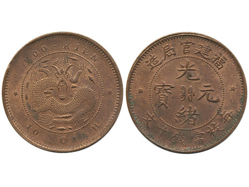 Banknotes, China - Empire. Pick S1175a, 100 coppers Year 33 (1907). Attractive example of a scarce note. Some ink writing. Graded by PMG as F 12. F. Banknotes, China - Empire. Pick S1175a, 100 coppers Year 33 (1907). Attractive example of a scarce note. Some ink writing. Graded by PMG as F 12. F. Visa mindre