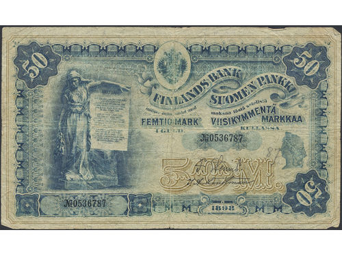 Banknotes, Finland. KM 6b, 50 markkaa 1898. No: 0536787. G. Banknotes, Finland. KM 6b, 50 markkaa 1898. No: 0536787. G. Visa mindre
