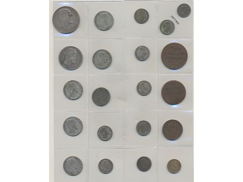 Coins, Denmark. Collection of 21 Danish coins in silver and copper 1800s. Please inspect! 1?-01. Coins, Denmark. Collection of 21 Danish coins in silver and copper 1800s. Please inspect! 1?-01. Visa mindre