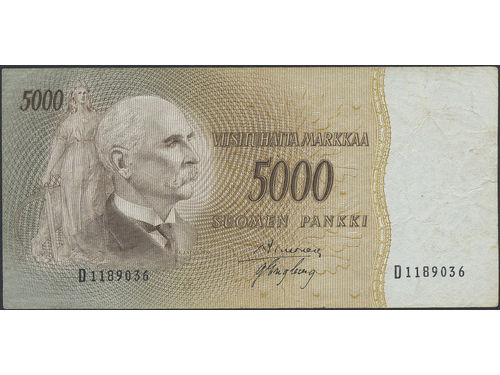 Banknotes, Finland. Pick 94a, 5000 markkaa 1955. D1189036. 1. Banknotes, Finland. Pick 94a, 5000 markkaa 1955. D1189036. 1. Visa mindre