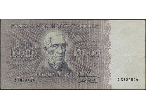 Banknotes, Finland. Pick 95a, 10000 markkaa 1955. A3522844. 1/1+. Banknotes, Finland. Pick 95a, 10000 markkaa 1955. A3522844. 1/1+. Visa mindre