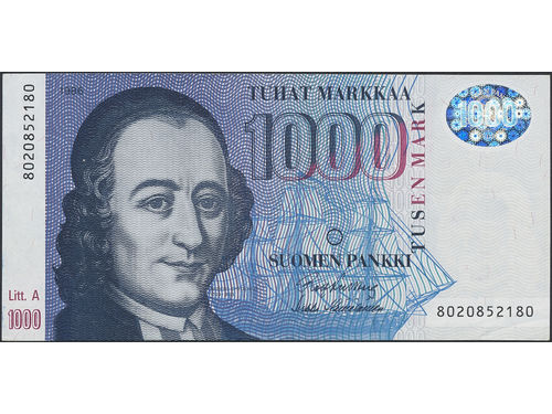 Banknotes, Finland. Pick 121, 1000 markkaa 1986. 8020852180. Litt. A. 1+. Banknotes, Finland. Pick 121, 1000 markkaa 1986. 8020852180. Litt. A. 1+. Visa mindre
