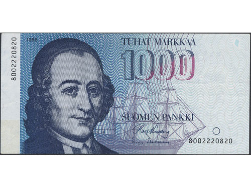 Banknotes, Finland. Pick 117a, 1000 markkaa 1986. 8002220820. 1+. Banknotes, Finland. Pick 117a, 1000 markkaa 1986. 8002220820. 1+. Visa mindre