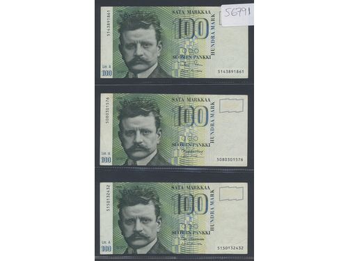 Banknotes, Finland. Pick 119, 100 markkaa 1986. Litt A. Three notes. 1-1+. Banknotes, Finland. Pick 119, 100 markkaa 1986. Litt A. Three notes. 1-1+. Visa mindre