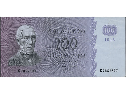 Banknotes, Finland. Pick 106a, 100 markkaa 1963. Litt. A. C7862307. 1+. Banknotes, Finland. Pick 106a, 100 markkaa 1963. Litt. A. C7862307. 1+. Visa mindre
