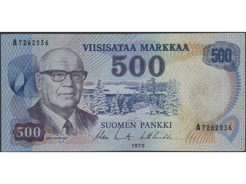Banknotes, Finland. Pick 110b, 500 markkaa 1975. A7262036. 1+/01. Banknotes, Finland. Pick 110b, 500 markkaa 1975. A7262036. 1+/01. Visa mindre