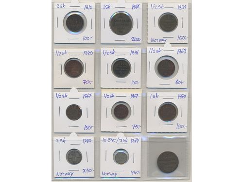 Coins, Norway. Group of 22 coins in high grades 1940s–1950s. Please inspect! 01-0. Coins, Norway. Group of 22 coins in high grades 1940s–1950s. Please inspect! 01-0. Visa mindre