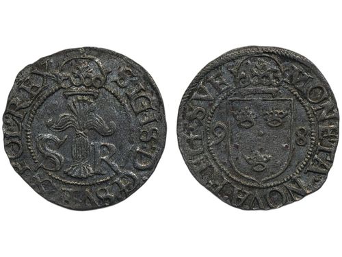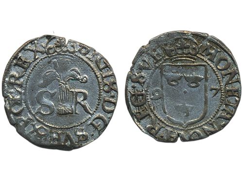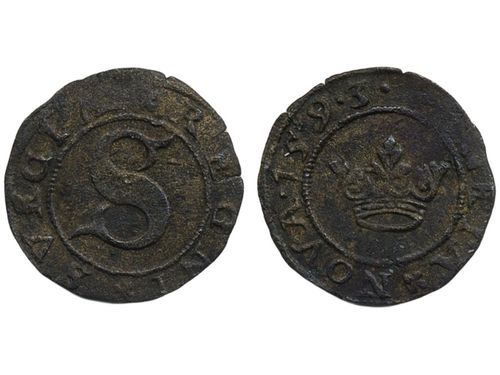 Coins, Sweden. Sigismund, SM 26a, 1 fyrk 1593. 0.98 g. Stockholm. 1+. Coins, Sweden. Sigismund, SM 26a, 1 fyrk 1593. 0.98 g. Stockholm. 1+. Visa mindre