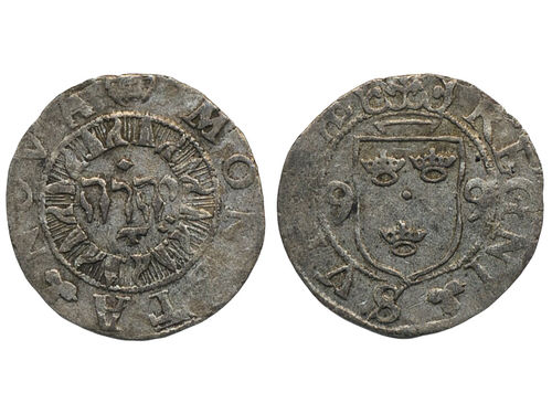 Coins, Sweden. Karl, regent, SM 23, 1 öre 1601. 2.98 g. Stockholm. Well struck example. 1+/01. Coins, Sweden. Karl, regent, SM 23, 1 öre 1601. 2.98 g. Stockholm. Well struck example. 1+/01. Visa mindre