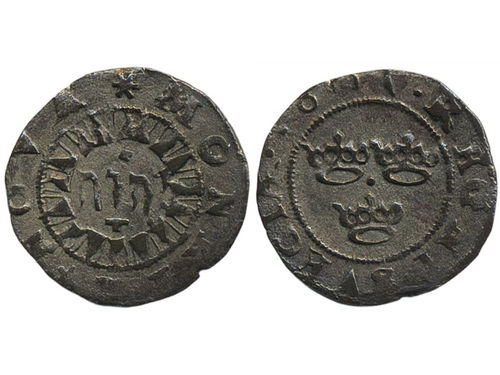 Coins, Sweden. Karl, regent, SM 31a, 1 fyrk 1601. 0.94 g. Stockholm. 1/1+. Coins, Sweden. Karl, regent, SM 31a, 1 fyrk 1601. 0.94 g. Stockholm. 1/1+. Visa mindre