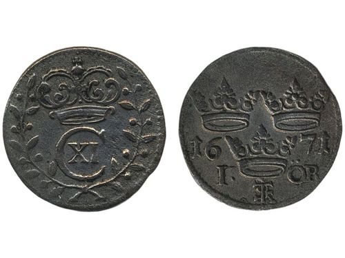 Coins, Sweden. Karl XI, SM 231, 1 öre 1671. 1.29 g. Stockholm. 1+. Coins, Sweden. Karl XI, SM 231, 1 öre 1671. 1.29 g. Stockholm. 1+. Visa mindre