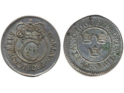 Coins, Sweden. Karl XI, SM 197c, 4 öre 1668. 3.57 g. Stockholm. Minor verdigris. Large 8 in date. Ex. Sten Törngren. SMB 208. Göhle 32. 1+/01. Coins, Sweden. Karl XI, SM 197c, 4 öre 1668. 3.57 g. Stockholm. Minor verdigris. Large 8 in date. Ex. Sten Törngren. SMB 208. Göhle 32. 1+/01. Visa mindre