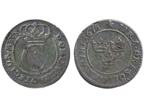 Coins, Sweden. Karl XI, SM 207, 4 öre 1678. 3.50 g. Stockholm. SMB 336. Göhle 397. 1+. Coins, Sweden. Karl XI, SM 207, 4 öre 1678. 3.50 g. Stockholm. SMB 336. Göhle 397. 1+. Visa mindre