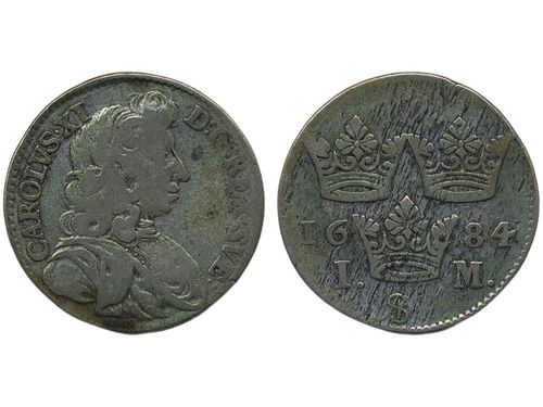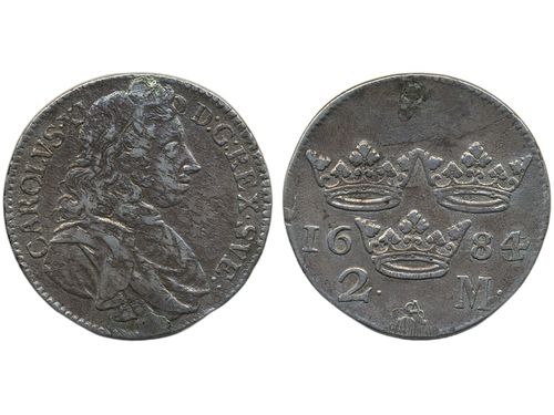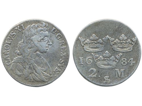 Coins, Sweden. Karl XI, SM 145, 2 mark 1684. 10.31 g. Stockholm. Lightly cleaned. SMB 227. Göhle 892. 1. Coins, Sweden. Karl XI, SM 145, 2 mark 1684. 10.31 g. Stockholm. Lightly cleaned. SMB 227. Göhle 892. 1. Visa mindre