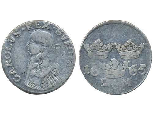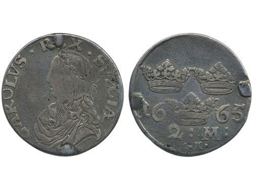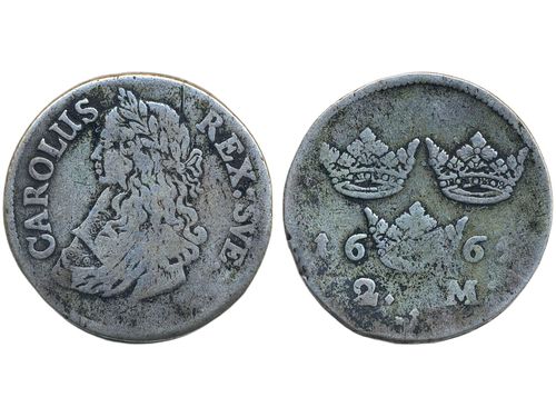 Coins, Sweden. Karl XI, SM 108c, 2 mark 1665. 10.22 g. Stockholm. Cleaned. RR. SMB 114. Göhle 228. 1. Coins, Sweden. Karl XI, SM 108c, 2 mark 1665. 10.22 g. Stockholm. Cleaned. RR. SMB 114. Göhle 228. 1. Visa mindre