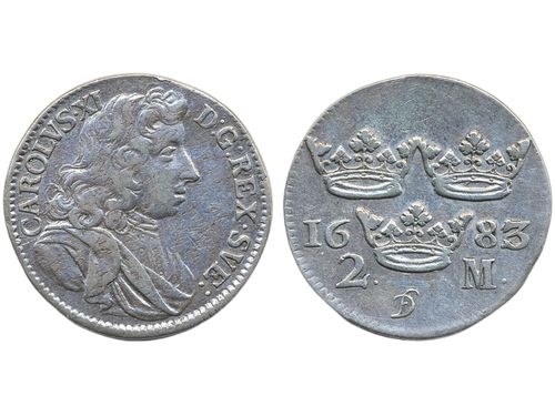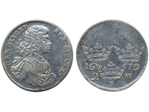 Coins, Sweden. Karl XI, SM 139, 2 mark 1679. 10.08 g. Stockholm. Cleaned. SMB 219. Göhle 855. 1+. Coins, Sweden. Karl XI, SM 139, 2 mark 1679. 10.08 g. Stockholm. Cleaned. SMB 219. Göhle 855. 1+. Visa mindre