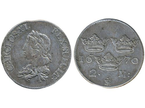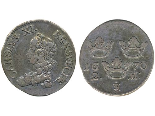 Coins, Sweden. Karl XI, SM 125b, 2 mark 1670. 9.85 g. Stockholm. Göhle 673. 1+. Coins, Sweden. Karl XI, SM 125b, 2 mark 1670. 9.85 g. Stockholm. Göhle 673. 1+. Visa mindre
