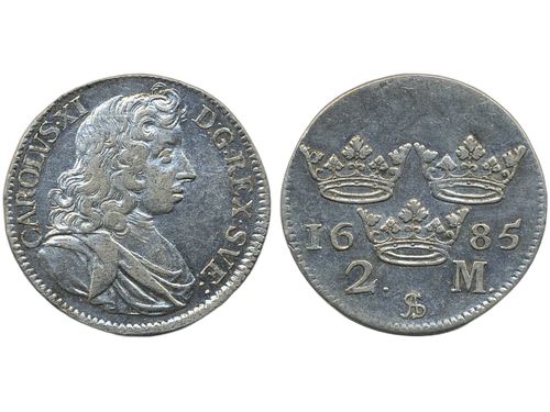 Coins, Sweden. Karl XI, SM 146, 2 mark 1685. 9.87 g. Stockholm. Cleaned. SMB 228. Göhle 897. 1+/01. Coins, Sweden. Karl XI, SM 146, 2 mark 1685. 9.87 g. Stockholm. Cleaned. SMB 228. Göhle 897. 1+/01. Visa mindre