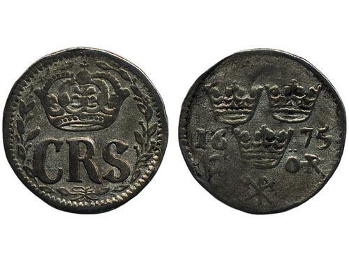 Coins, Sweden. Karl XI, SM 257a, 2 öre 1675. 1.58 g. Landskrona. Sought after type coin. 1/1+. Coins, Sweden. Karl XI, SM 257a, 2 öre 1675. 1.58 g. Landskrona. Sought after type coin. 1/1+. Visa mindre
