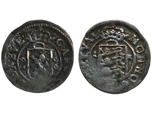 Coins, Sweden. Karl XI, SM 196b, 4 öre 1667. 3.30 g. Stockholm. SOLFWER. Small scratch in obverse field. SMB 303. Göhle 18. 1+. Coins, Sweden. Karl XI, SM 196b, 4 öre 1667. 3.30 g. Stockholm. SOLFWER. Small scratch in obverse field. SMB 303. Göhle 18. 1+. Visa mindre