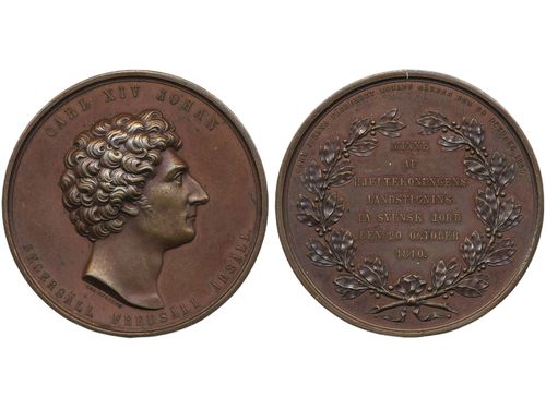 Medals, regal, Sweden. Karl XIV Johan, Hild. 46, Bronze medal, 56 mm, 64.90 g. Struck in 1860 to Commemorate the 50th An.. Läs mer Medals, regal, Sweden. Karl XIV Johan, Hild. 46, Bronze medal, 56 mm, 64.90 g. Struck in 1860 to Commemorate the 50th Anniversary of Karl Johan's arrival to Sweden in 1810, by Lea Ahlborn. SKM 53c. 01. Visa mindre