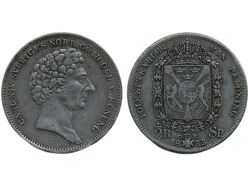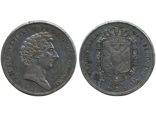 Coins, Sweden. Karl XIV Johan, SM 61, 1 riksdaler specie 1833. Lightly cleaned. 1+. Coins, Sweden. Karl XIV Johan, SM 61, 1 riksdaler specie 1833. Lightly cleaned. 1+. Visa mindre