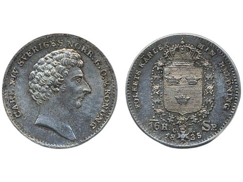 Coins, Sweden. Karl XIV Johan, SM 95, 1/16 riksdaler specie 1835. 01/0. Coins, Sweden. Karl XIV Johan, SM 95, 1/16 riksdaler specie 1835. 01/0. Visa mindre