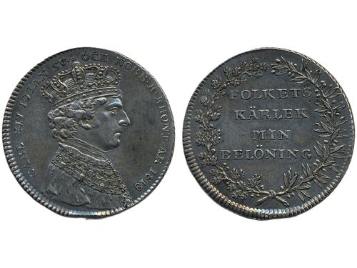 Coins, Sweden. Karl XIV Johan, SM 177, Largesse medal (1/2 riksdaler specie) 1844. To Funeral of King Karl XIV Johan. 1+. Coins, Sweden. Karl XIV Johan, SM 177, Largesse medal (1/2 riksdaler specie) 1844. To Funeral of King Karl XIV Johan. 1+. Visa mindre
