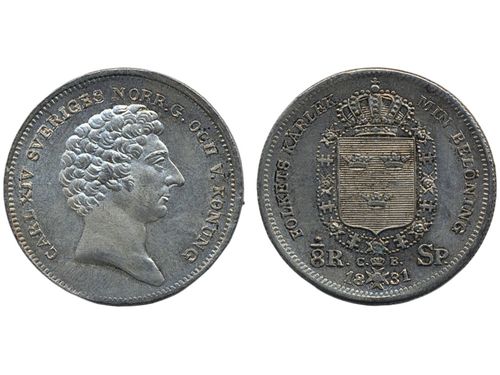 Coins, Sweden. Karl XIV Johan, SM 85, 1/8 riksdaler specie 1831. Lustrous example. 01. Coins, Sweden. Karl XIV Johan, SM 85, 1/8 riksdaler specie 1831. Lustrous example. 01. Visa mindre