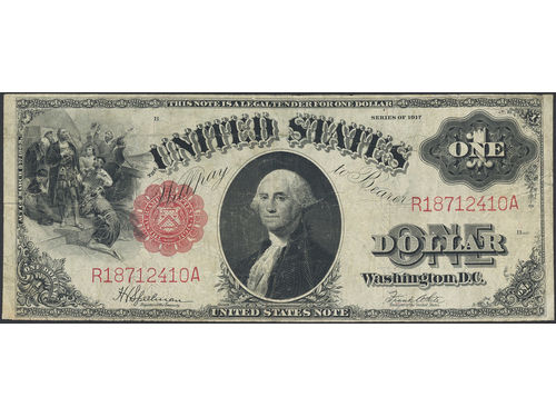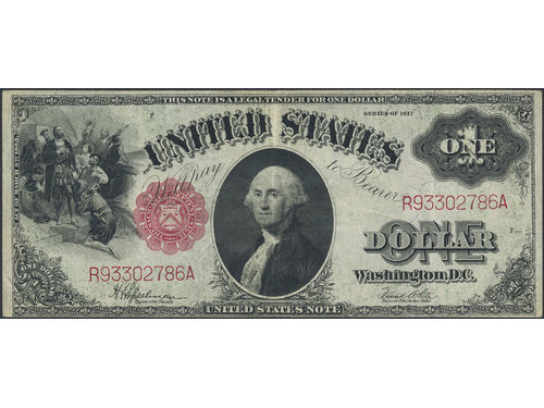 Banknotes, U.S.A. Pick 187, 1 dollar 1917. R93302786A. Fresh example of this early type note. VF. Banknotes, U.S.A. Pick 187, 1 dollar 1917. R93302786A. Fresh example of this early type note. VF. Visa mindre