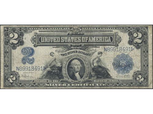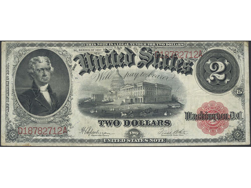 Banknotes, U.S.A. Pick 188, 2 dollars 1917. Speelman-White signatures. Fresh paper. VF. Banknotes, U.S.A. Pick 188, 2 dollars 1917. Speelman-White signatures. Fresh paper. VF. Visa mindre
