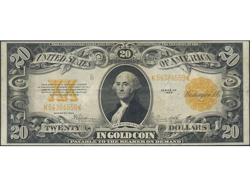 Banknotes, U.S.A. Pick 275, 20 dollars 1922. VF. Banknotes, U.S.A. Pick 275, 20 dollars 1922. VF. Visa mindre