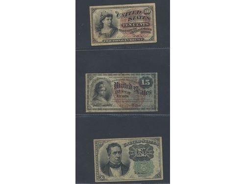 Banknotes, U.S.A. Small lot of five fractional notes including 10 cents 1874 (Pick 122a), 10 cents 1863 (Pick 115a), 15.. Läs mer Banknotes, U.S.A. Small lot of five fractional notes including 10 cents 1874 (Pick 122a), 10 cents 1863 (Pick 115a), 15 cents 1863 (Pick 116c), 25 cents 1874 (Pick 123), 50 cents 1874 (Pick 124). Please inspect! VG-XF. Visa mindre