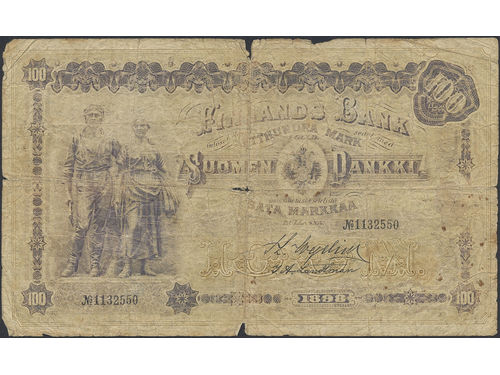 Banknotes, Finland. Pick 7c, 100 markkaa 1898. No: 1132550. 2. Banknotes, Finland. Pick 7c, 100 markkaa 1898. No: 1132550. 2. Visa mindre