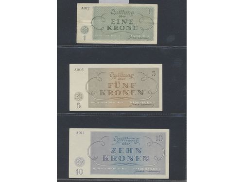 Banknotes, Germany. Six banknotes from Theresienstadt, 1–100 Kronen, mixed quality. Banknotes, Germany. Six banknotes from Theresienstadt, 1–100 Kronen, mixed quality. Visa mindre