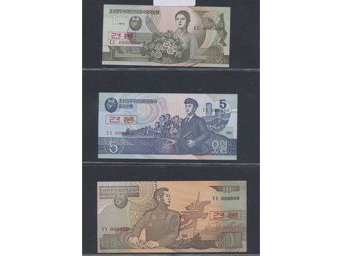 Banknotes, North Korea. 1992. 5 specimen banknotes, 1–100 won. UNC. Banknotes, North Korea. 1992. 5 specimen banknotes, 1–100 won. UNC. Visa mindre