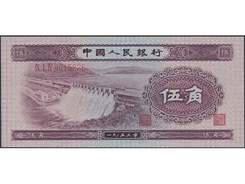 Banknotes, China, Mixed. Pick 865, 5 jiao 1953. No: IX I IV 8615225. UNC. Banknotes, China, Mixed. Pick 865, 5 jiao 1953. No: IX I IV 8615225. UNC. Visa mindre