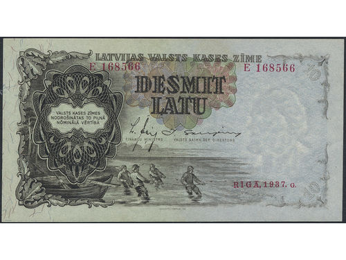Banknotes, Latvia. Pick 20a, 50 latu 1934. 948782. Graded by PMG as AU58, comment 'minor rust'. XF-UNC. Banknotes, Latvia. Pick 20a, 50 latu 1934. 948782. Graded by PMG as AU58, comment 'minor rust'. XF-UNC. Visa mindre