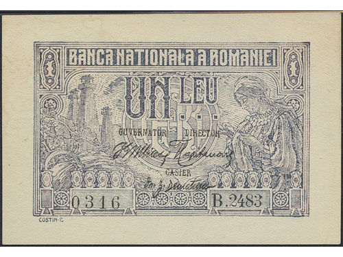 Banknotes, Romania. Pick 17, 1 leu ND (1915–16). 0316 B2483. Graded by PMG as uncriculated 65 EPQ. UNC. Banknotes, Romania. Pick 17, 1 leu ND (1915–16). 0316 B2483. Graded by PMG as uncriculated 65 EPQ. UNC. Visa mindre