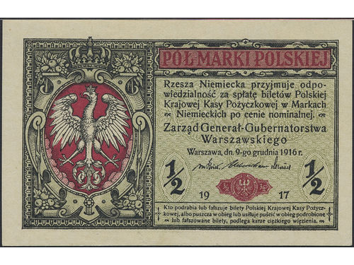 Banknotes, Poland. Pick 7, 1/2 marki 1917. Graded by PMG as uncirculated 64. UNC. Banknotes, Poland. Pick 7, 1/2 marki 1917. Graded by PMG as uncirculated 64. UNC. Visa mindre