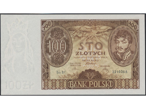 Banknotes, Poland. Pick 75a, 100 zlotych 1934. BF 3210368. Graded by PMG as uncirculated 66 EPQ. UNC. Banknotes, Poland. Pick 75a, 100 zlotych 1934. BF 3210368. Graded by PMG as uncirculated 66 EPQ. UNC. Visa mindre