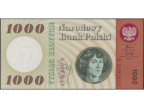 Banknotes, Poland. Pick 141b, 1000 zlotych 1965. S3392633. Graded by PMG as uncirculated 68 EPQ. Very high grade! UNC. Banknotes, Poland. Pick 141b, 1000 zlotych 1965. S3392633. Graded by PMG as uncirculated 68 EPQ. Very high grade! UNC. Visa mindre