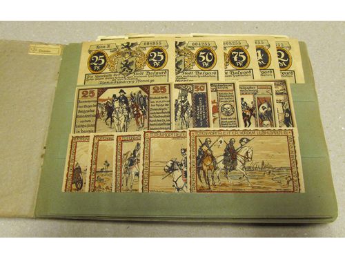 Banknotes, Germany, Mixed. 229 Notgeld banknotes in orginal album, 1918–1921, mixed quality. Banknotes, Germany, Mixed. 229 Notgeld banknotes in orginal album, 1918–1921, mixed quality. Visa mindre