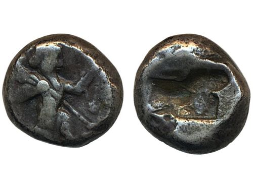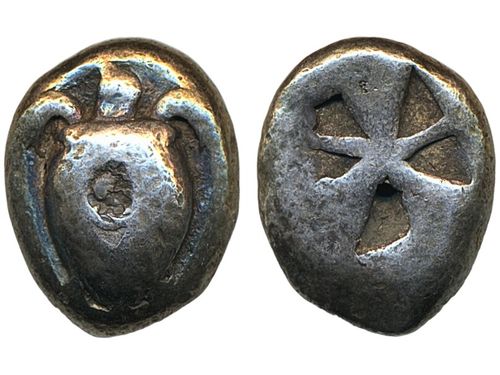 Coins, Norway. Haakon VI, NMB 11a, 1 penning ND. 0.30 g. Oslo? Bracteate with O between opposing crowns. Edge loss. LL XXIX:6a. 1+. Coins, Norway. Haakon VI, NMB 11a, 1 penning ND. 0.30 g. Oslo? Bracteate with O between opposing crowns. Edge loss. LL XXIX:6a. 1+. Visa mindre