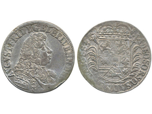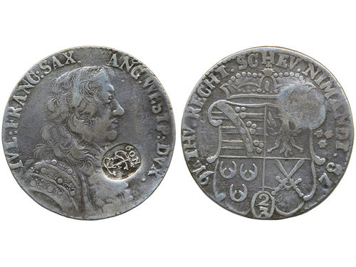Coins, Denmark. Frederik III, Sieg 66, 1/6 speciedaler 1648. 4.76 g. Klippe coinage to coronation. Reverse scratches. Hede 48. 1+. Coins, Denmark. Frederik III, Sieg 66, 1/6 speciedaler 1648. 4.76 g. Klippe coinage to coronation. Reverse scratches. Hede 48. 1+. Visa mindre