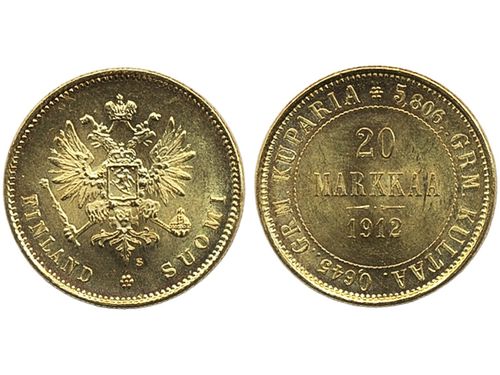 Banknotes, Finland. Pick 26, 20 markkaa 1909. 0064459 Litt A. Scarce issue from Independent Finland with Litt. A. Approx. 10 recorded examples. 1?/1. Banknotes, Finland. Pick 26, 20 markkaa 1909. 0064459 Litt A. Scarce issue from Independent Finland with Litt. A. Approx. 10 recorded examples. 1?/1. Visa mindre